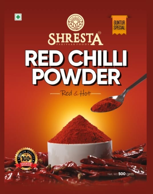 Shresta made from premium quality RED CHILLIS sourced from the best farms. A quality product packed with minimum human interference. Red Chilli powder is used in chutneys, curries & sauces. It adds sizzle, enhances color and brings out flavour. A pure quality, perfect aroma and the right flavour that enriches any Indian dish it’s added to. No added flavours and colours.